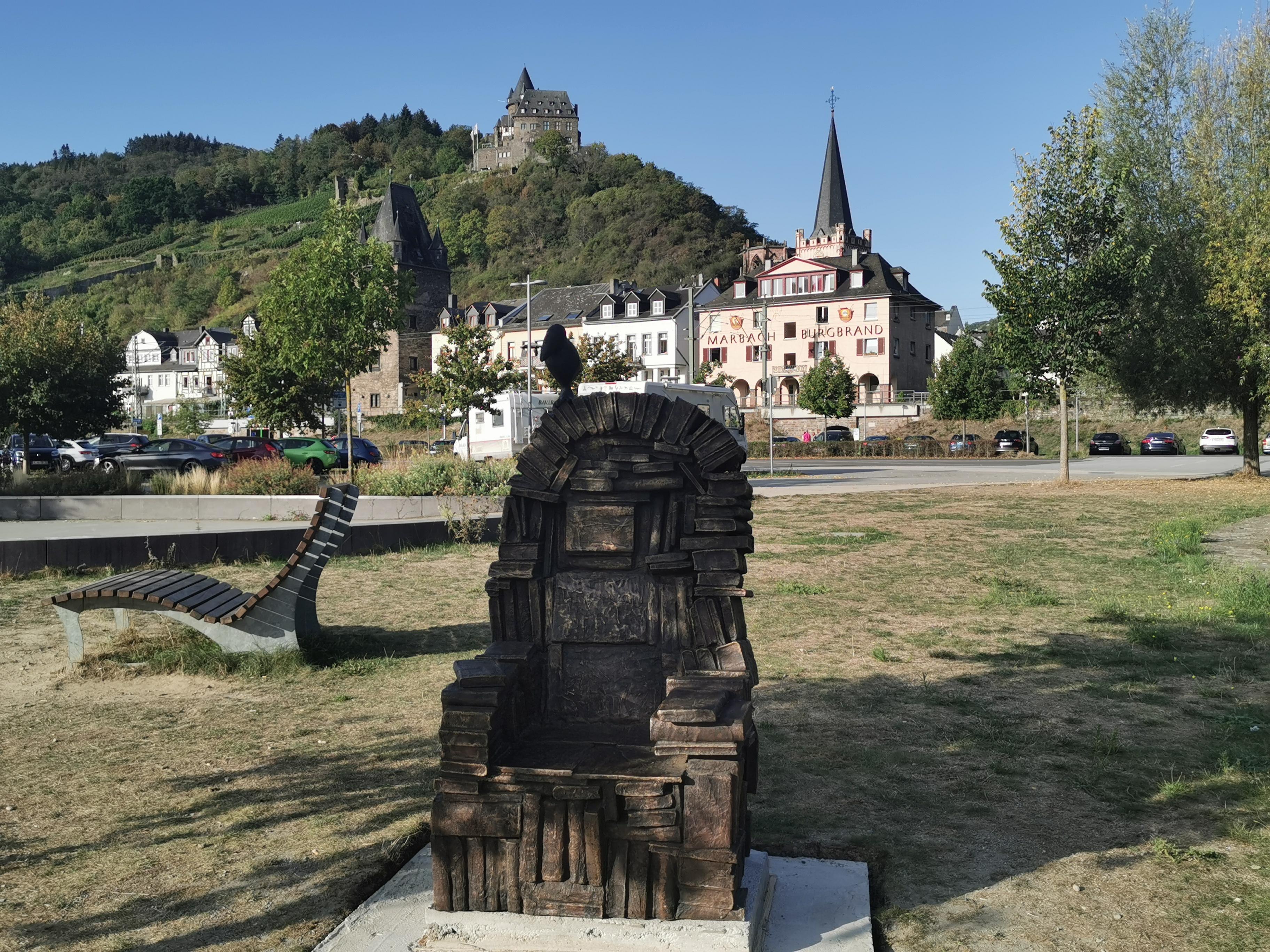 Ein Mosaikstein des literarischen Stadtbildes von Bacharach ist eine Bronzeskulptur der Künstlerin Liesel Metten.