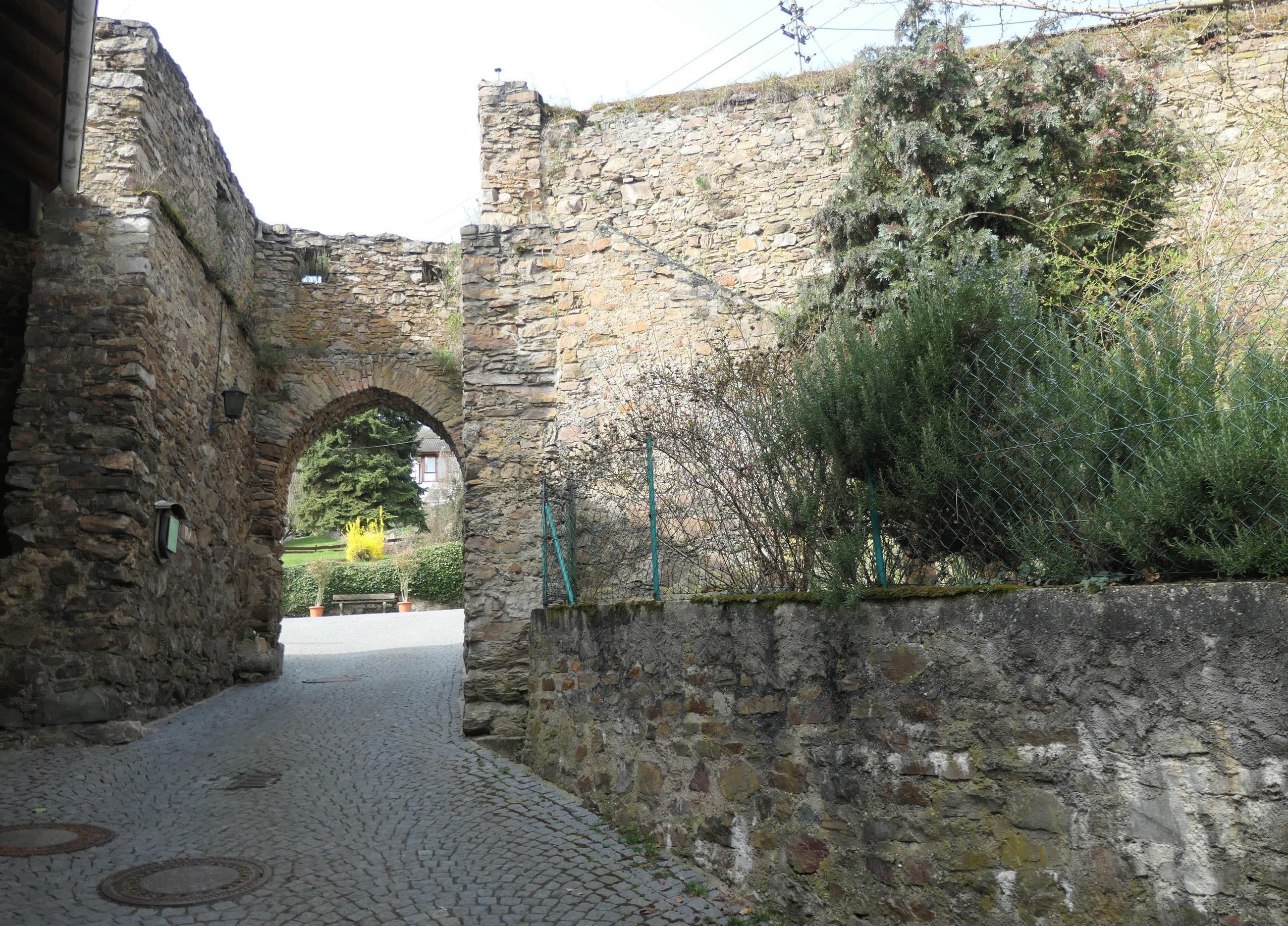 Beachtliche Reste der mittelalterlichen Ringmauer sind im Westen der Mainzer Straße in Trechtingshausen erhalten.