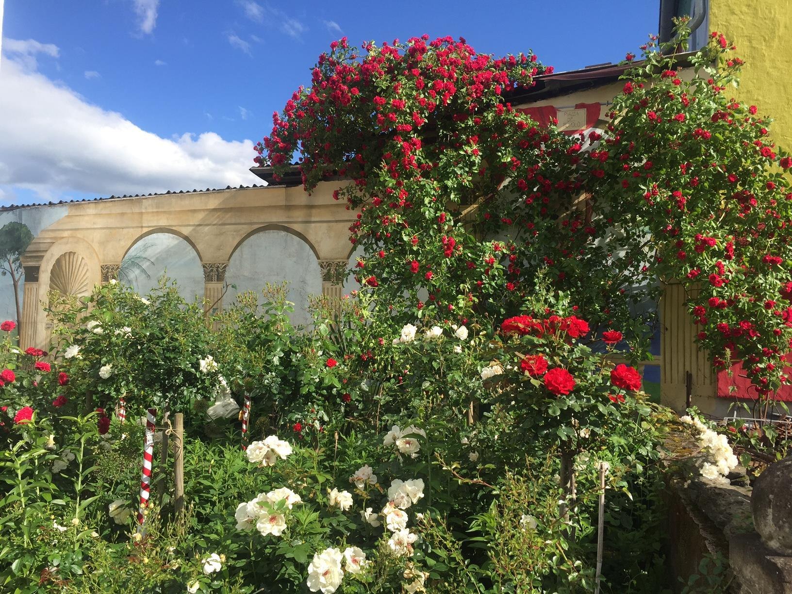 In the middle of the ROSE VILLAGE MEDENSCHEID on the Rhine elevation of Bacharach are – connected by a garden gate – the two ROSE GARDENS Langer & Lieber, - main actors – the ROSES