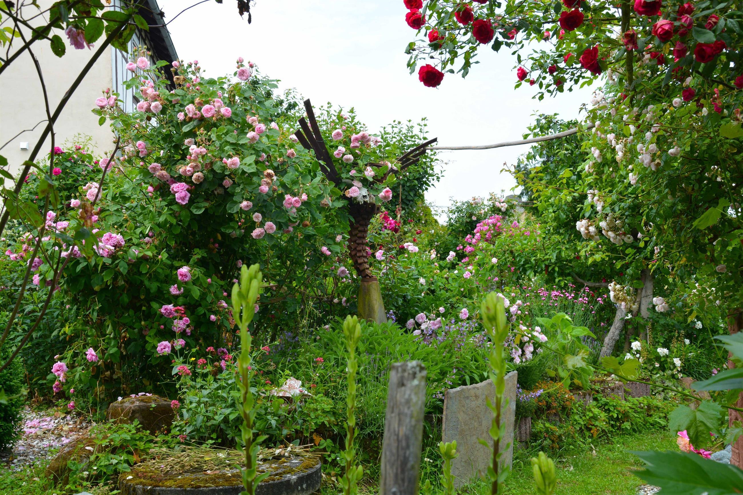 Your `Rose Collection on the Rheinhöhe´ in the heart of the romantic Middle Rhine Valley has been part of the `Route of World Heritage Gardens´ since 2017. Back to PARADISE - Back to the GARDENS The paradise apple, from the rose family, takes us directly to the ROSES – the Queen of Flowers! As the flower of goddesses, messenger of love, healing plant since antiquity, and symbol of seduction, it already opens the gate to PARADISE for us today with its enchanting FRAGRANCE and beauty. The ROSE PARADISE on the Rheinhöhe leads you through winding paths of blooming garden spaces along a very personal collection of over 500 different roses – wonderfully wild, yet finely tuned together. Inspired by rose enthusiasts and pioneers of garden art, the garden spaces reflect the gardeners' love for the ROSES and their passion for the garden. The lush rose blooms of the once-flowering Historical Roses and Ramblers in JUNE fascinate anew every year with their light-filled ROSE SCENES. The fireworks of their color palette and the overwhelming FRAGRANCE that wafts over the gardens seduce the senses, provide moments of happiness, and awaken the longing to linger. Birdsong and the buzzing of insects fill the air. A diverse selection of insect-friendly plants, as well as sustainable soil and plant care, offer many animals nourishment and habitat.